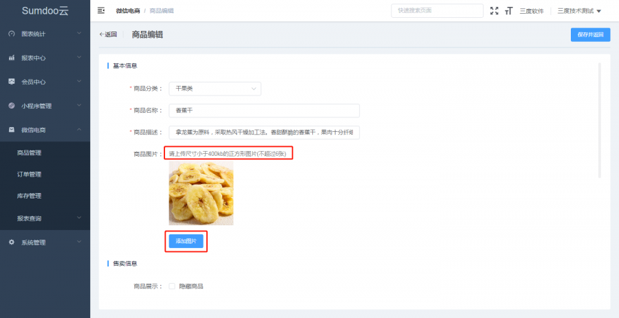 商品详情中则可以设置产品名称、价格(原价、现价、会员价)、规格(可设置多规格)、产品描述(商品定义、商品多图展示、商品长图展示)等,满足商家对商品的个性化描述,也让顾客对产品有全面的了解。