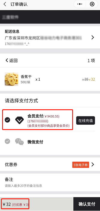可支持微信支付、会员支付