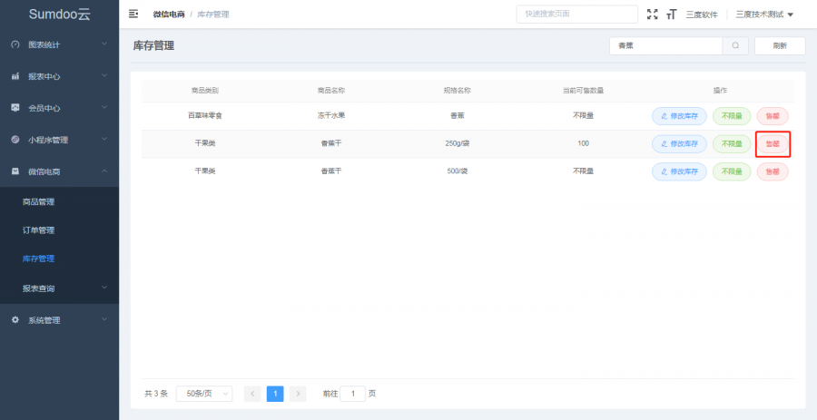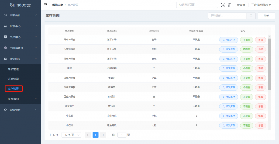 库存管理可设置商品售卖数量,支持限量销售或不限量销售设置,支持多规格实时库存,方便控制库存情况。当商品售罄后,小程序端同时对售罄商品无法下单,避免出现顾客下单却无货的情况。